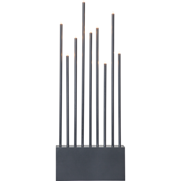 Stílhreinn kertastjaki með þungum viðarbotni með 9 ljósgjöfum. Textílsnúra í hvítu/gráu. Gefur yndislega birtu allt árið um kring.