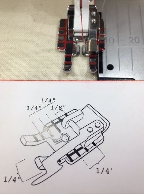 Bútasaumsfótur 1/4" með miðjustýringu sem auðveldar að sauma ofan í sauma