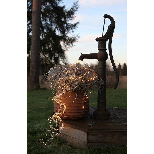 Hentar vel í tré - blómapotta eða á pallinn. 23 leiðslur með silfruðum vír.