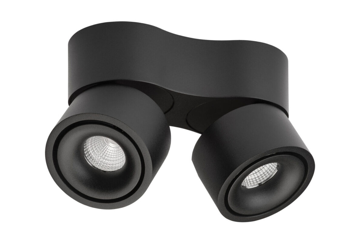 12.3W LED. Dimmable. 230V. 2700K. 831lm. BA32°. CRI90+. 50.000h. IP20. 360° Vertical | 90° Horizontal. Ø:7.5cm X2. H: 9cm. L: 16cm. Aluminium base.