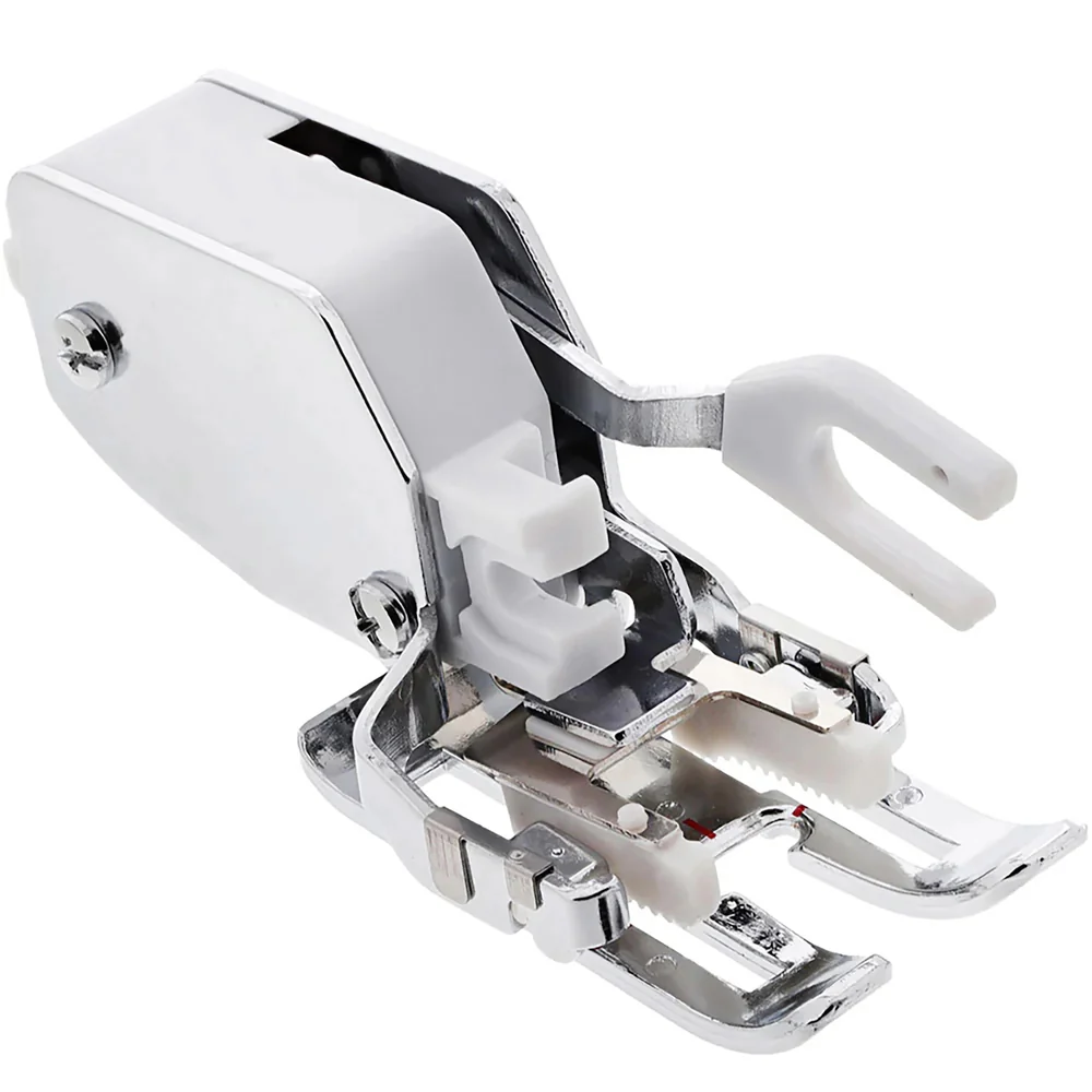 Fótur með yfirflytjari. Auðveldar saumaskap á fleiri efnislögum í bútasaumi, þegar köflótt eða röndótt mynstur eiga að standast á, eða ef vinna á með loðin eða sleip efni sem vilja skríða til. Eins fer vélin auðveldlega í gegnum þykk efni eins og leður, rúskinn eða gallaefni. Yfirflytjarinn á fætinum grípur í efra lagið á meðan flytjarinn á vélinni grípur í það neðra, þannig flytjast þau jafn í gegnum vélina.