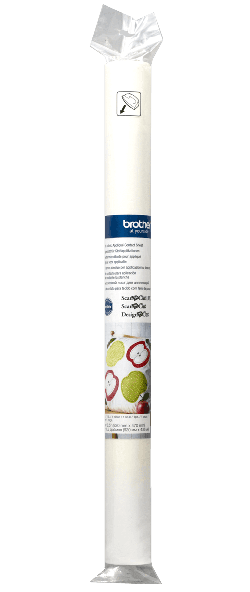 Iron-on Fabric Applique Contact Sheet, straulím til notkunar með Brother ScanNCut skurðarvélinni. Straujað á bakhlið efnisins, fjarlægið pappírinn áður en mynstrið er skorin út úr því. Komið fyrir á Standard Mat skurðarmottunni og skerið mynstrið út. Til að setja saman verkefni eins og bútasaum, notaðu High Tack Adhesive Fabric Support Sheet (fylgir ekki með). 1 rúlla – 36" x 18,5" (920 mm x 470 mm) BHCASTBL1