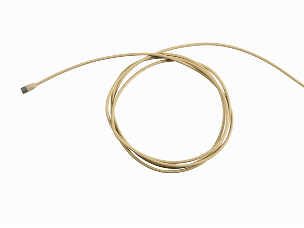 Ljósbrúnn næluhljóðnemi fyrir þráðlausa senda með skrúfanlegum 3.5mm jack tengi. Er líka fáanlegur með lemo tengi.
