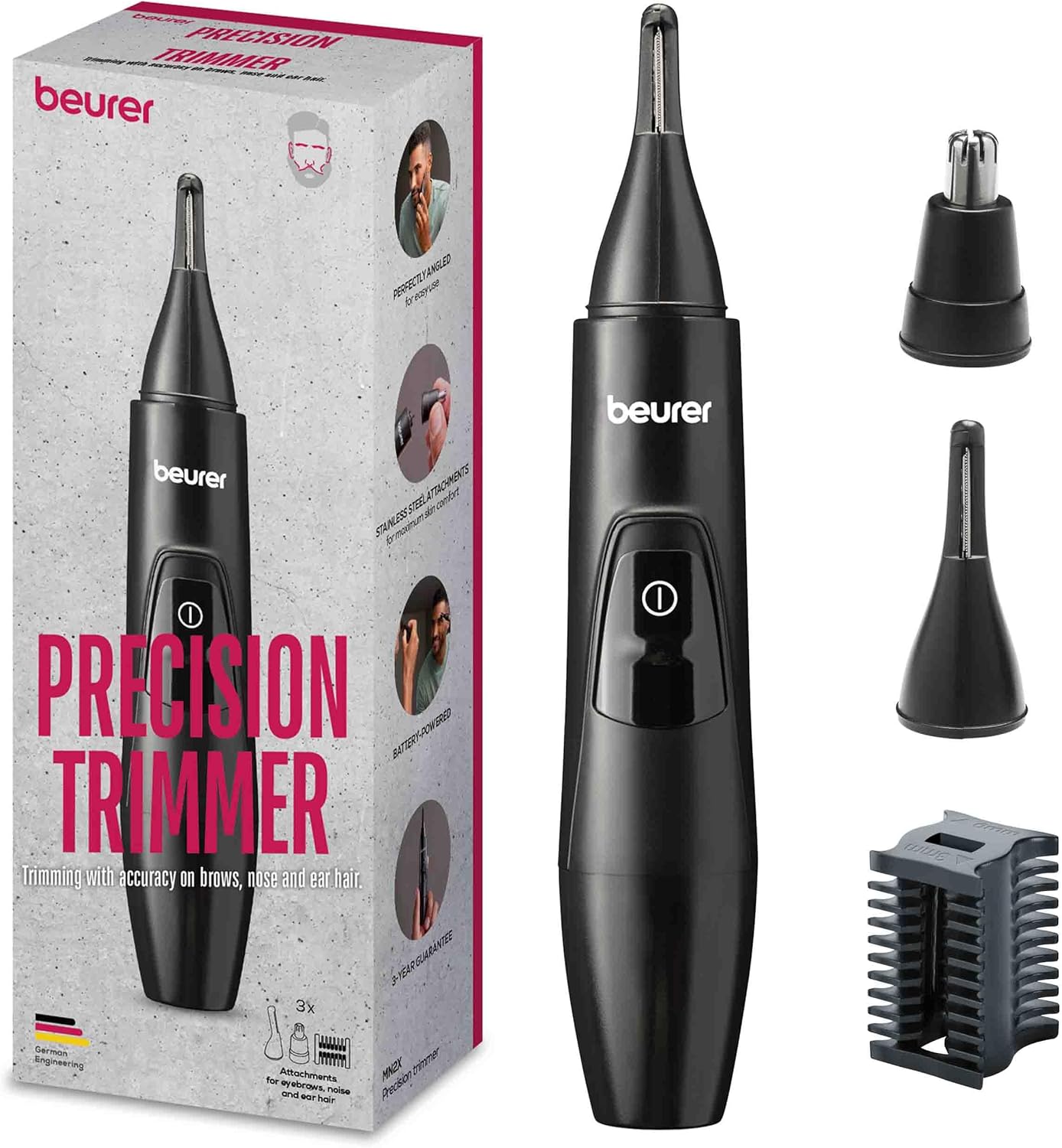 Vél til að fjarlægja óæskileg hár í nefi - eyrum og augnabrúnum. Aukaplastkambar 3 og 6 mm