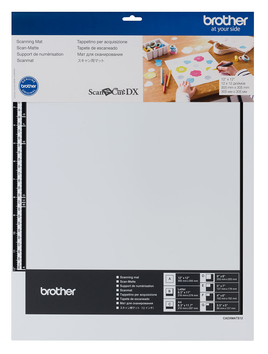 Scanning Mat 12"x 12" Skönnunar mottan er sérstaklega hönnuð til að skanna efni allt að 1 mm að þykkt eins og ljósmyndir, listaverk og viðkvæman pappír. Skönnunar mottan tryggir mikil gæði við skönnun þar sem hún heldur fyrir myndinni alveg stöðugri á meðan skönnunin fer fram.Skannasvæði: 11,6" x 11,7" (296,7 mm x 298,8 mm) Til notkunar með Brother ScanNCut DX vélinni. Ekki ætlað til skurðar. Sjá leiðbeiningablaðið inni fyrir nákvæmar leiðbeiningar um notkun og umhirðu.